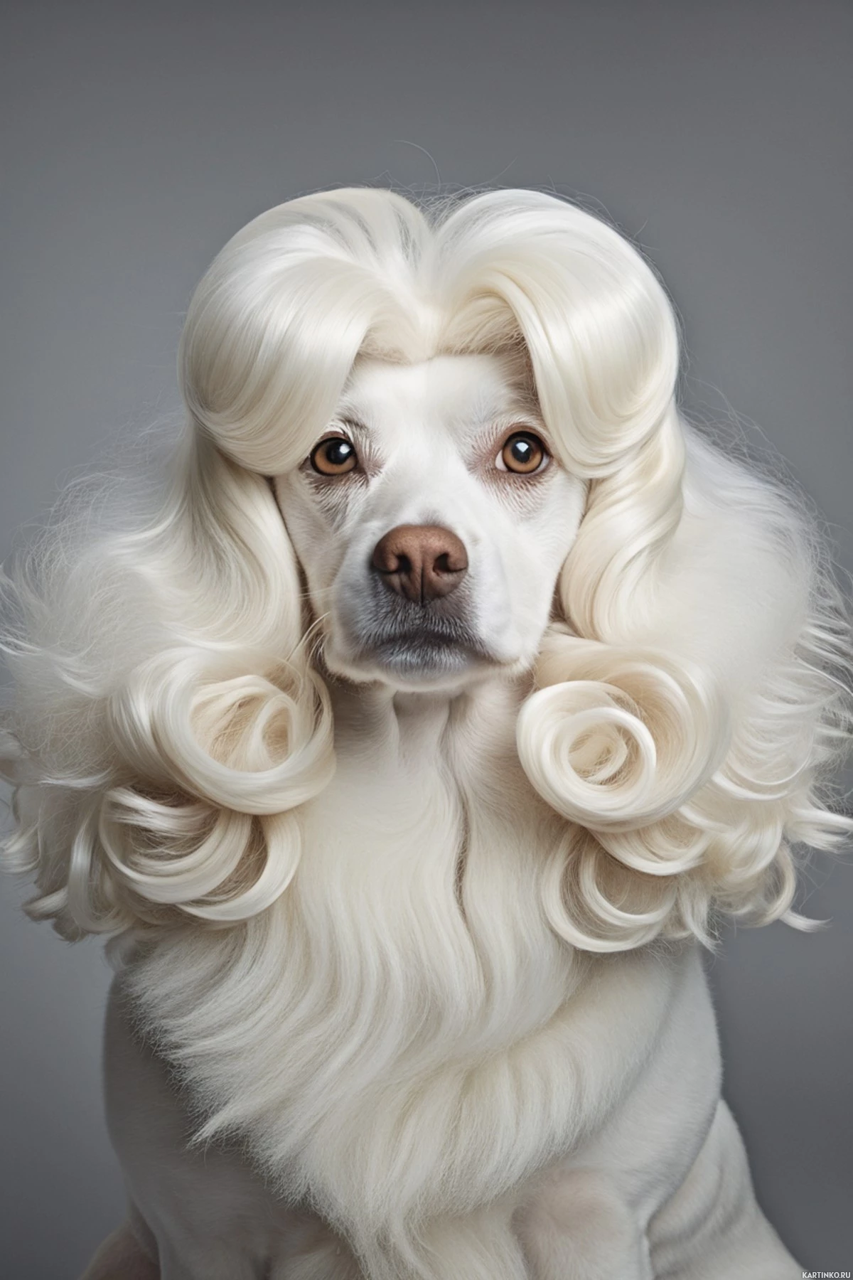 The image features a dog with long, curly