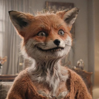 a real fox. The individual appears to be sitting in what looks like