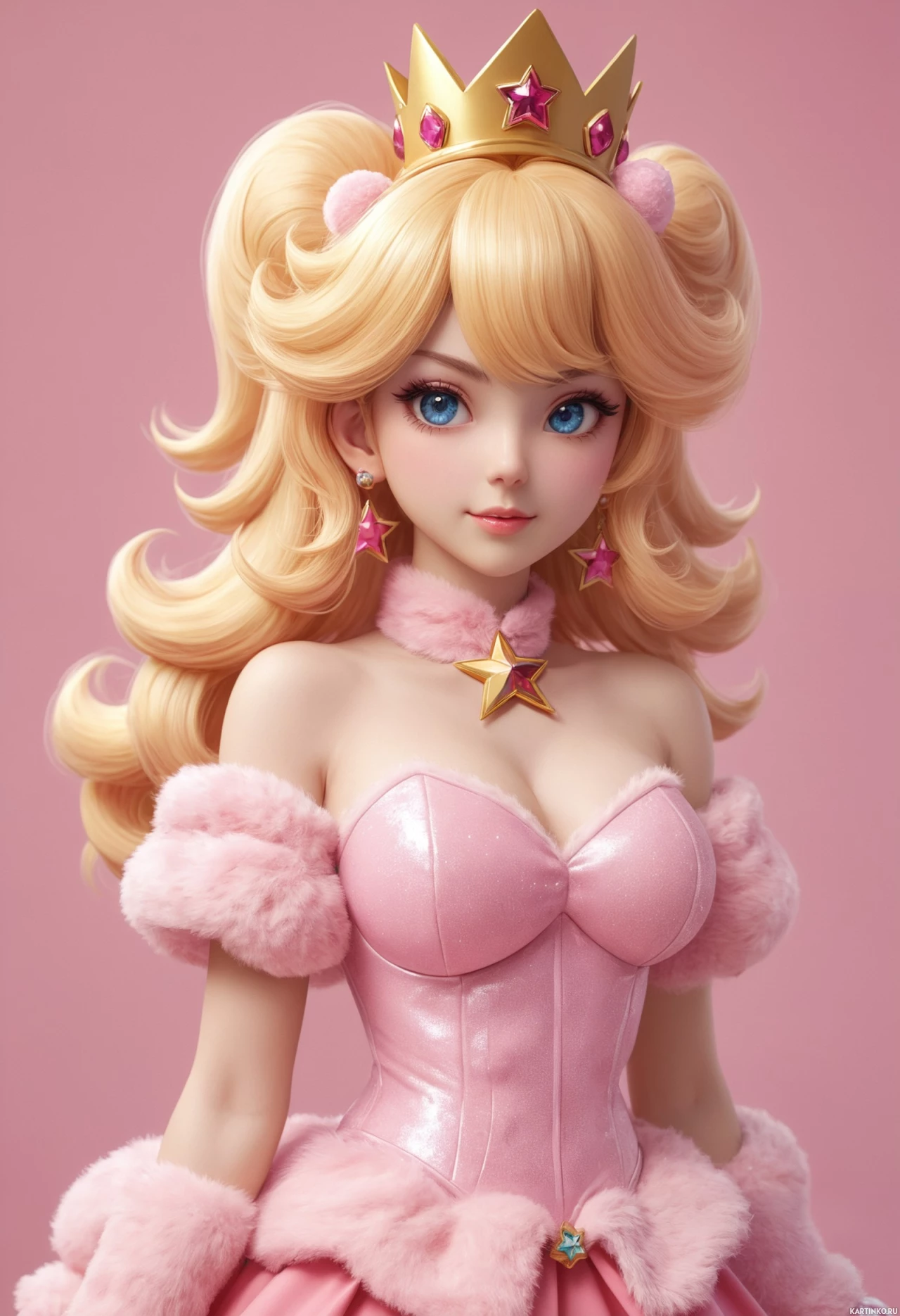 an animated character styled as Princess Peach from the Super Mario series. The character is depicted in a stylized, detailed manner typical of contemporary
