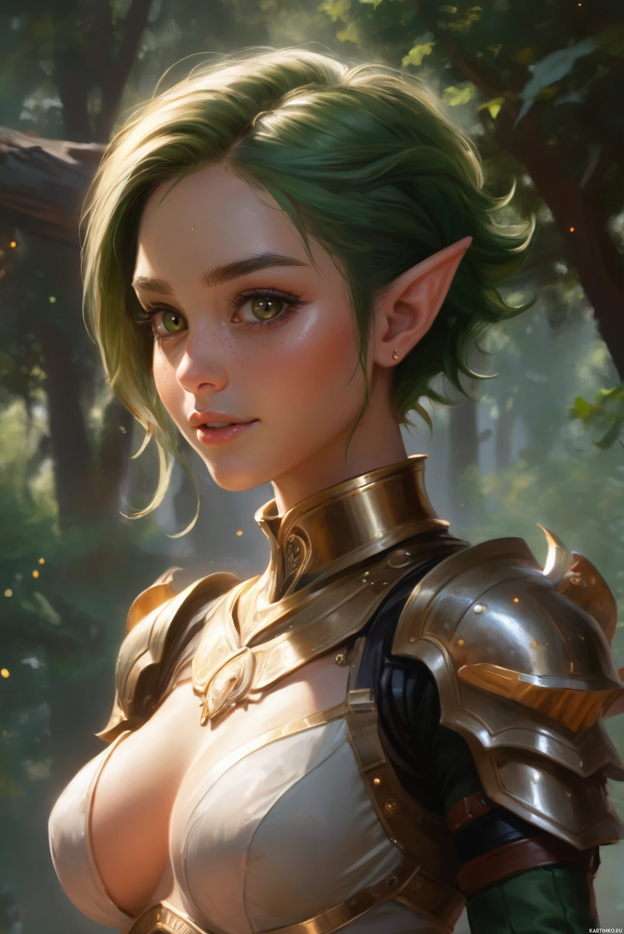 Эльф фэнтези с зелёными волосами и доспехами Больше картинок по схожим темам