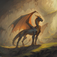scene with a dragon as its central figure. The dragon is seated on what appears to be a natural platform, surrounded by