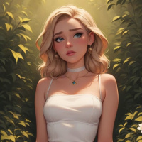 floral patterns around her, suggesting an artistic or stylized setting. The woman's pose and the overall composition of the image contribute to its