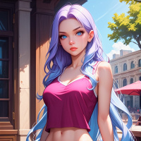 a female character, possibly from an animated or video game setting. She has long, flowing
