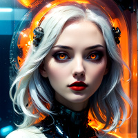 the futuristic vibe of the image. The character is depicted in a three-quarter view against a backdrop that includes what appears to be a spaceship or space station environment, with lights and panels suggesting