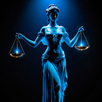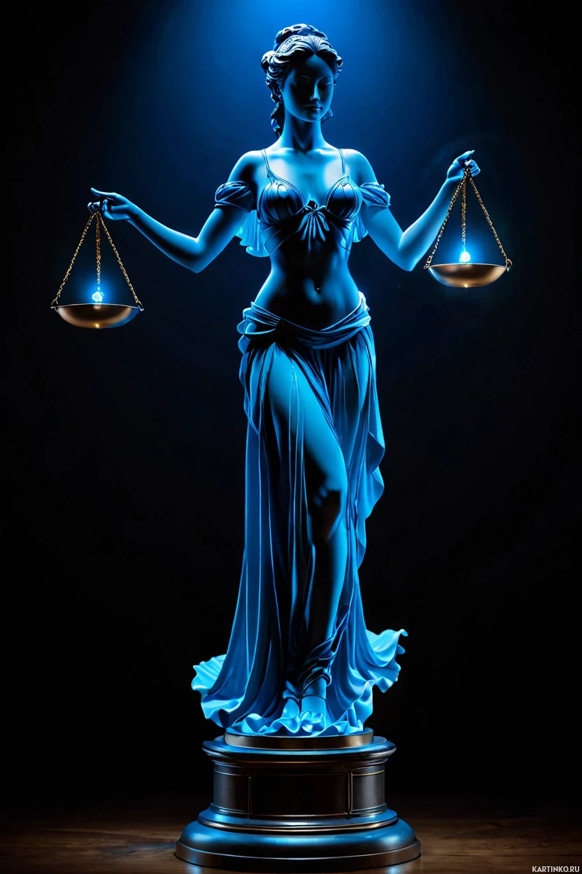 divine justice. She is often associated with themes of order and law. In this representation, she holds a pair of scales in one hand, symbolizing balance and fairness, while her other hand rests on