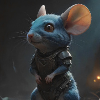 an adventurous setting. The overall image conveys a whimsical and heroic theme for this anthropomorphic mouse character.