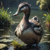 a distinctive crest on its head and an orange bill, which suggests it might be a species with these characteristics. Surrounding the bird are