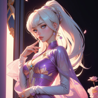 a warm glow on the character. To respect the request for not using specific words: This image features a girl with