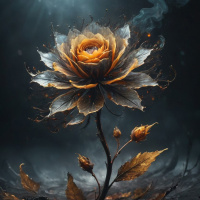 the delicate nature of the lotus. The overall impression is one of resilience or transformation despite difficult conditions, which could be symbolic of the flower's ability to bloom amidst challenges or darkness. The artwork seems to combine elements of nature with a narrative about hope and perseverance in