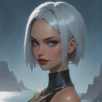 white hair, styled in a way that is common for characters in fantasy genres. She has