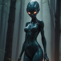 science fiction, where technology meets nature, possibly hinting at a narrative involving aliens or artificial intelligence exploring or interacting with an unfamiliar environment.