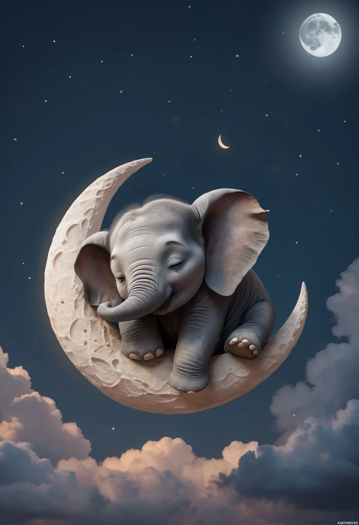 Луна | Фотки и рисунки с Луной | Moon | Спящий маленький слоненок