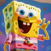an animated character, SpongeBob SquarePants, from a popular animated television series and movie. He is a sponge with square pants, blue shorts, and