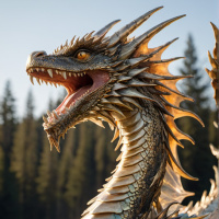 a fantastical creature that resembles a dragon. It features a prominent set of