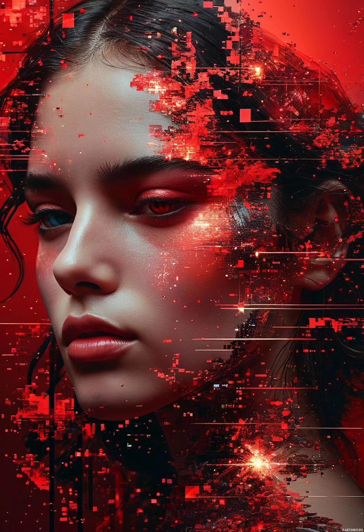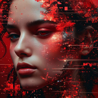 digital artistry. The image showcases a vivid mix of colors, primarily red and black, against a contrasting