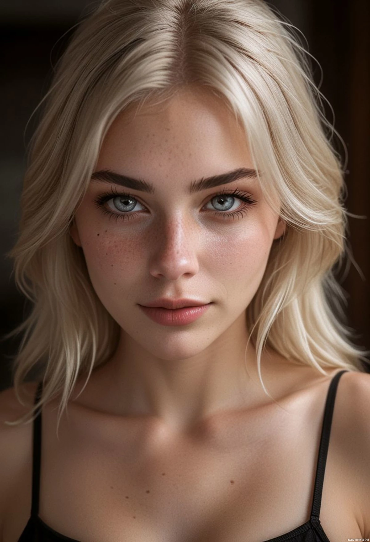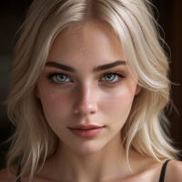 makeup look that highlights her natural features. The background is plain and does not provide any additional context or setting details.