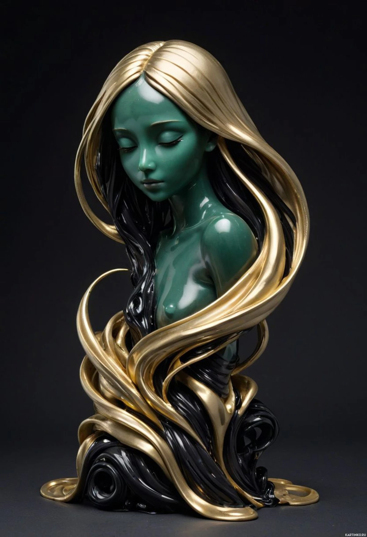 Золотая и зеленая скульптура девушки с закрытыми глазами Больше картинок по схожим темам