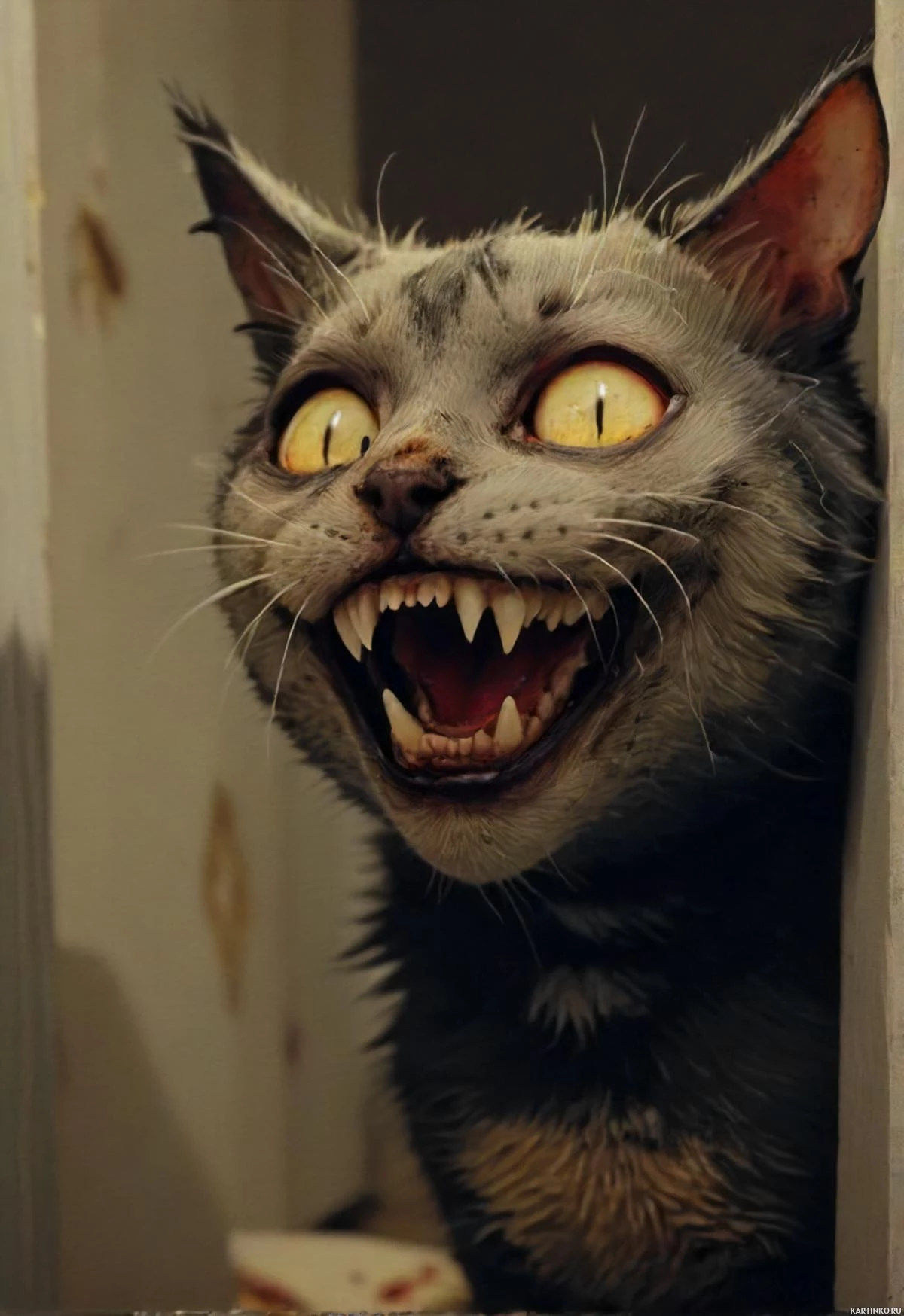 Кот с безумными глазами и оскалом Больше картинок по схожим темам