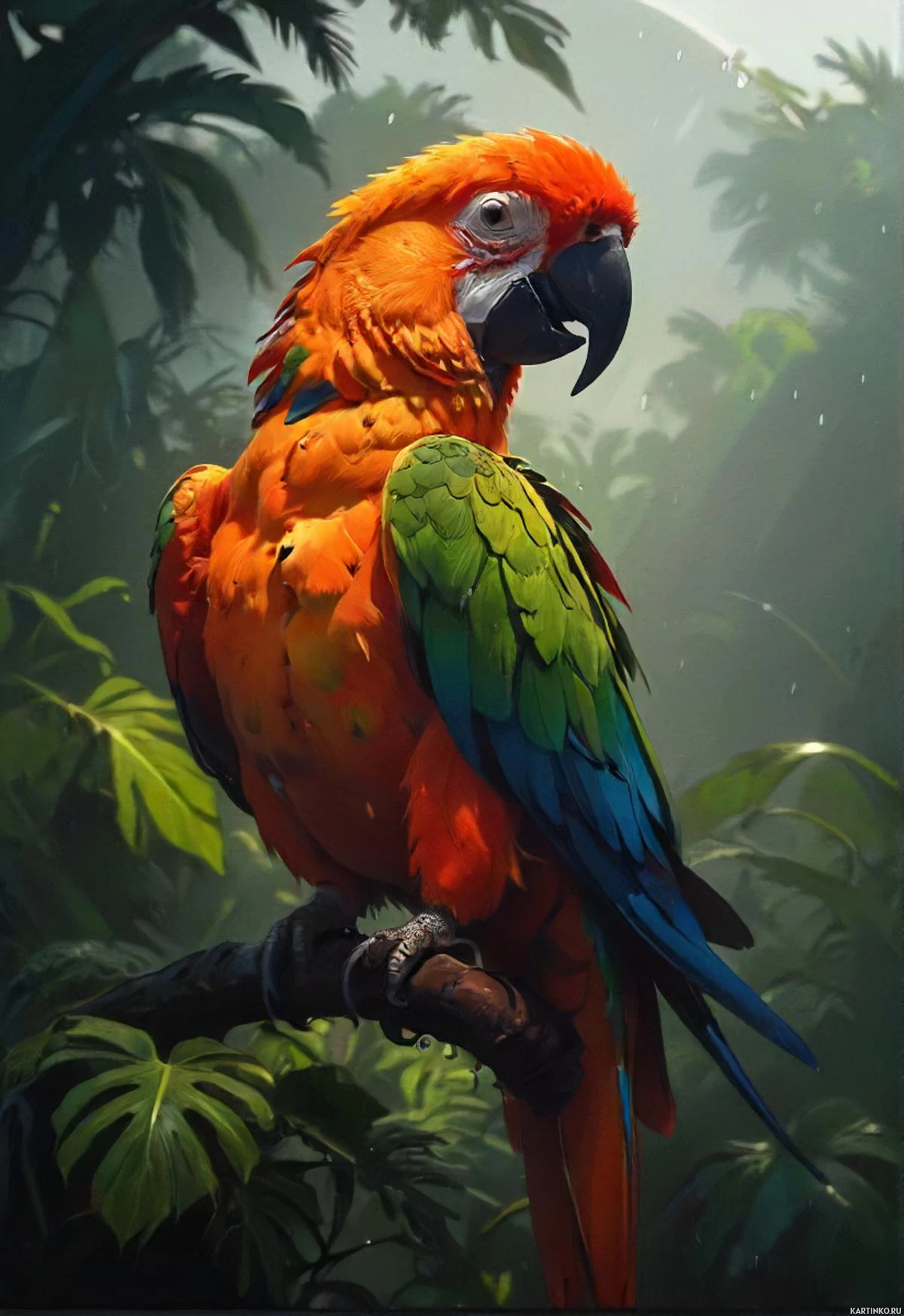 Яркий попугай на фоне тенистых джунглей Картинки с такими же тегами