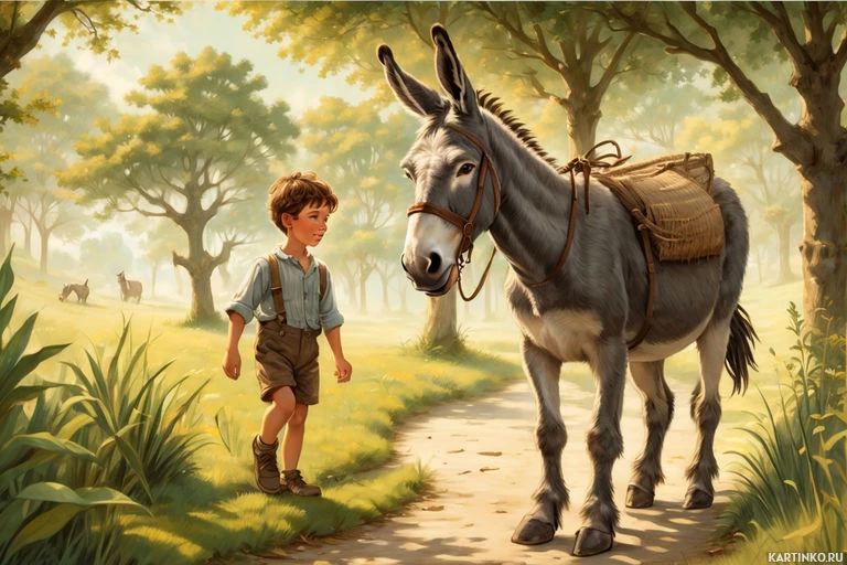 an outdoor area with trees and grass visible in the background. There are no animals identified as donkeys in this picture; it features a horse.