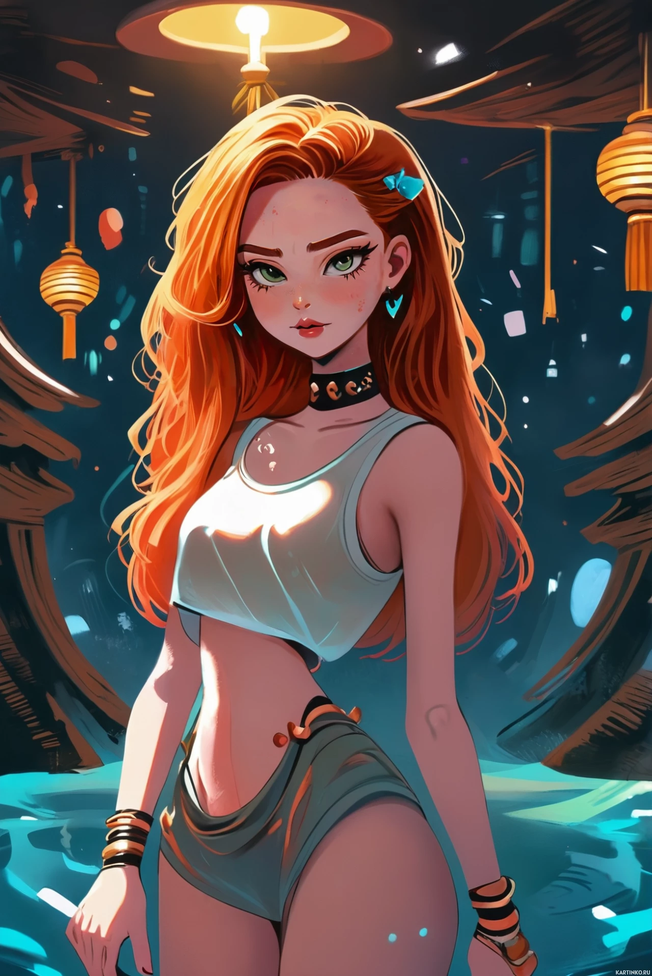 Девушка в майке с рыжими волосами и золотистым чокером Больше картинок по схожим темам