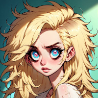 На картинке изображена анимированная девушка с длинными светлыми волосами и выразительными голубыми глазами. У неё светлая кожа, а в ушах - жемчужные серьги. Она одета в белую блузку с открытыми плечами с кружевной отделкой на груди. Фон – мягкий градиент от нежно-голубого цвета рядом с девушкой до более темного оттенка в нижней части картинки.