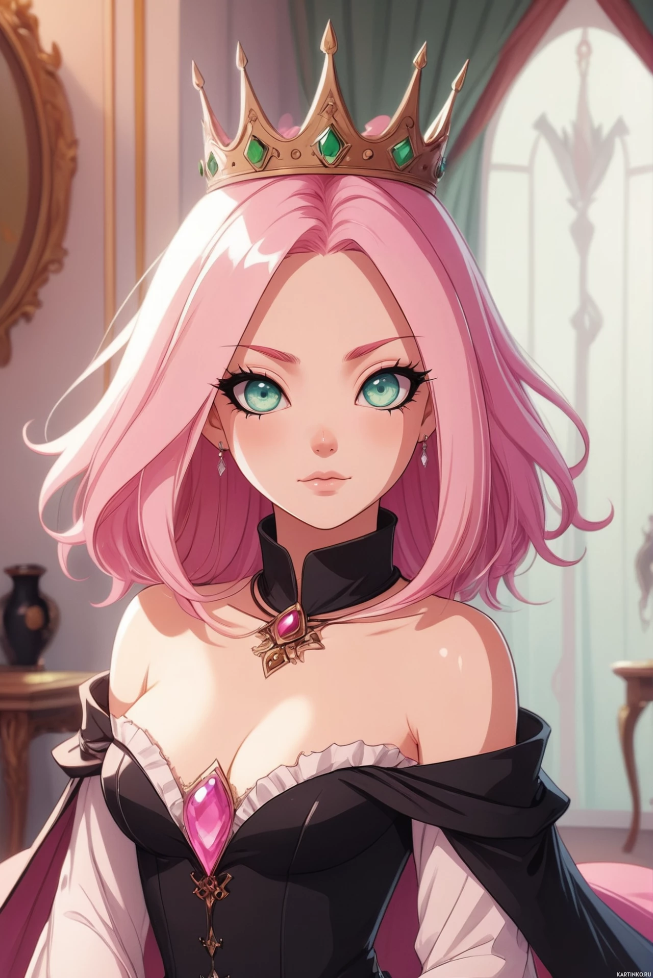 девушки | Фотки и рисунки с девушкой | Girls | Девушка с розовыми волосами в королевском стиле