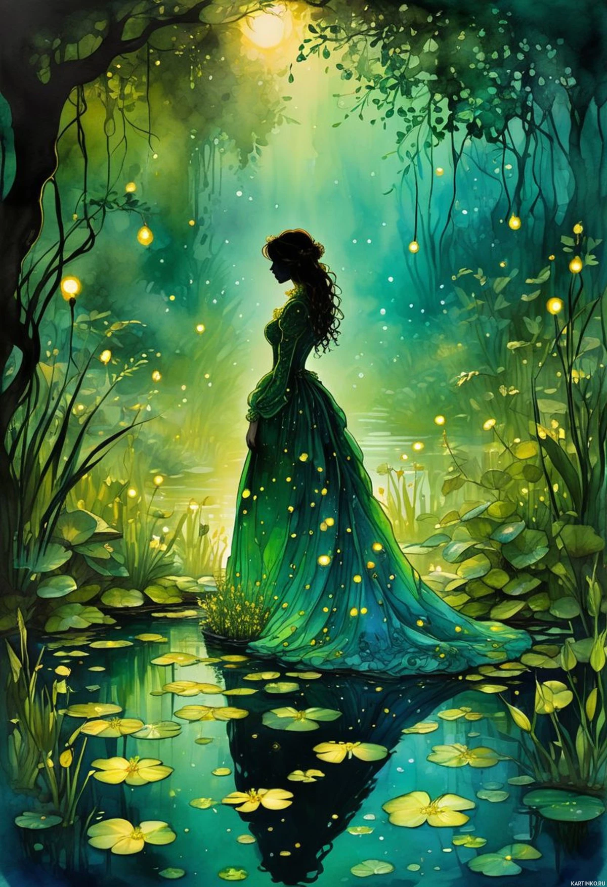 платья | Красивые авы с платьем | Dresses | Изумрудный лес с силуэтом девушки