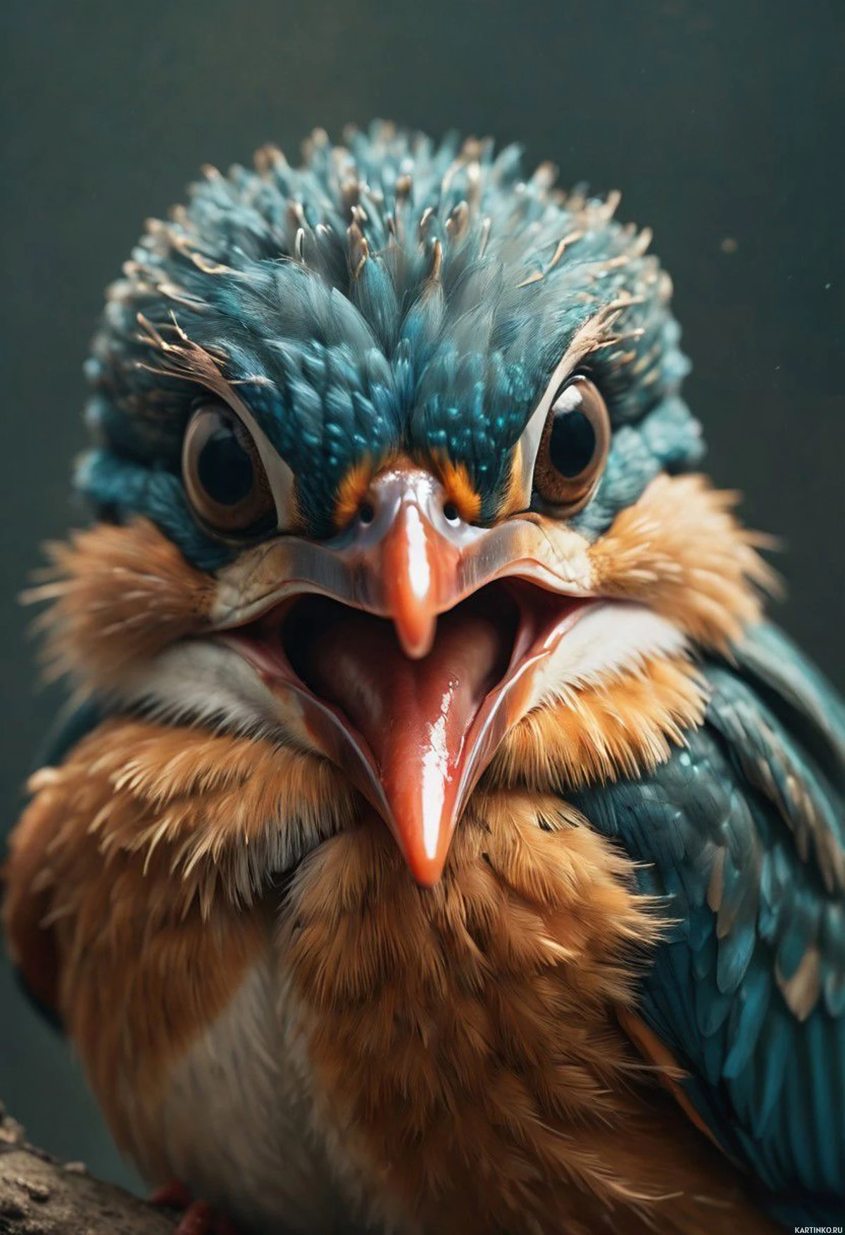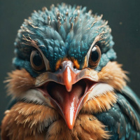 The image features a detailed illustration of a bird's head. It appears to be a stylized or artistic representation rather than a photograph of an actual bird. The bird is depicted with striking blue and white colors on its feathers, particularly around the eyes and neck areas. Its beak is slightly open as if it were in mid-chirp or screeching, which adds to