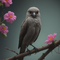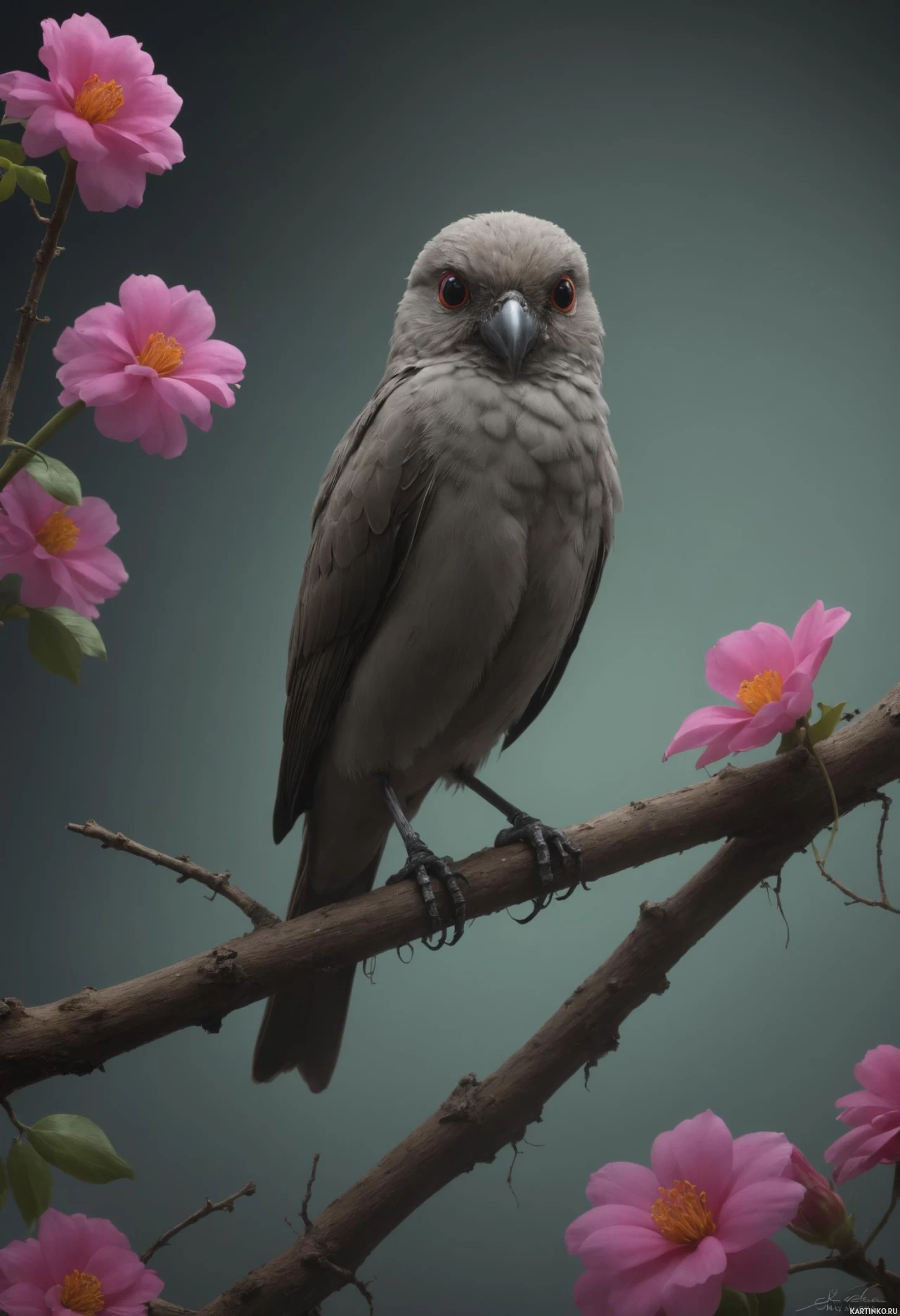 птицы | Скачать аватары с птицей | Birds | Красота природы: серая птица на фоне розовых цветов