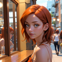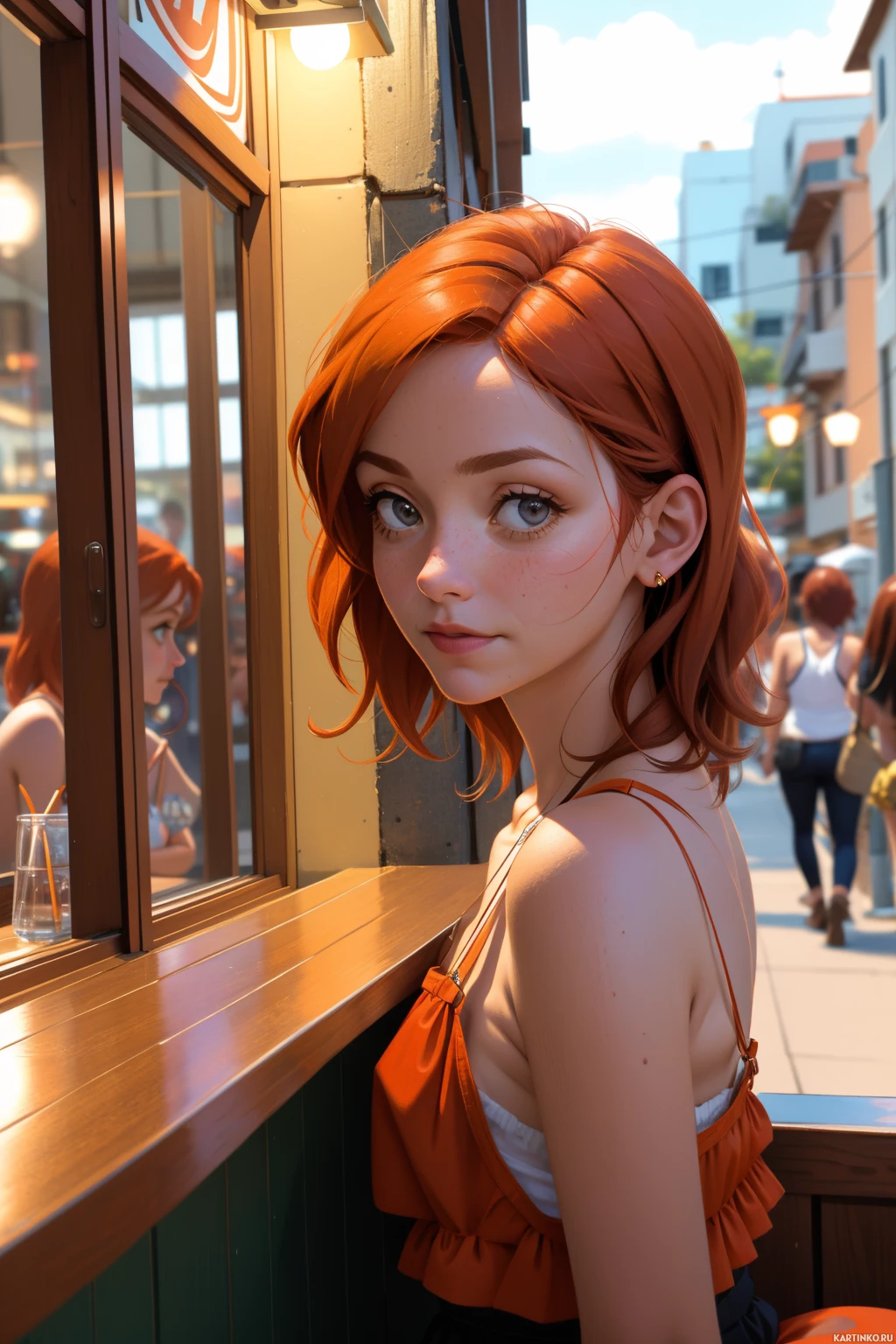 рыжие волосы | Red-haired | Девушка с яркими рыжими волосами в уличном кафе