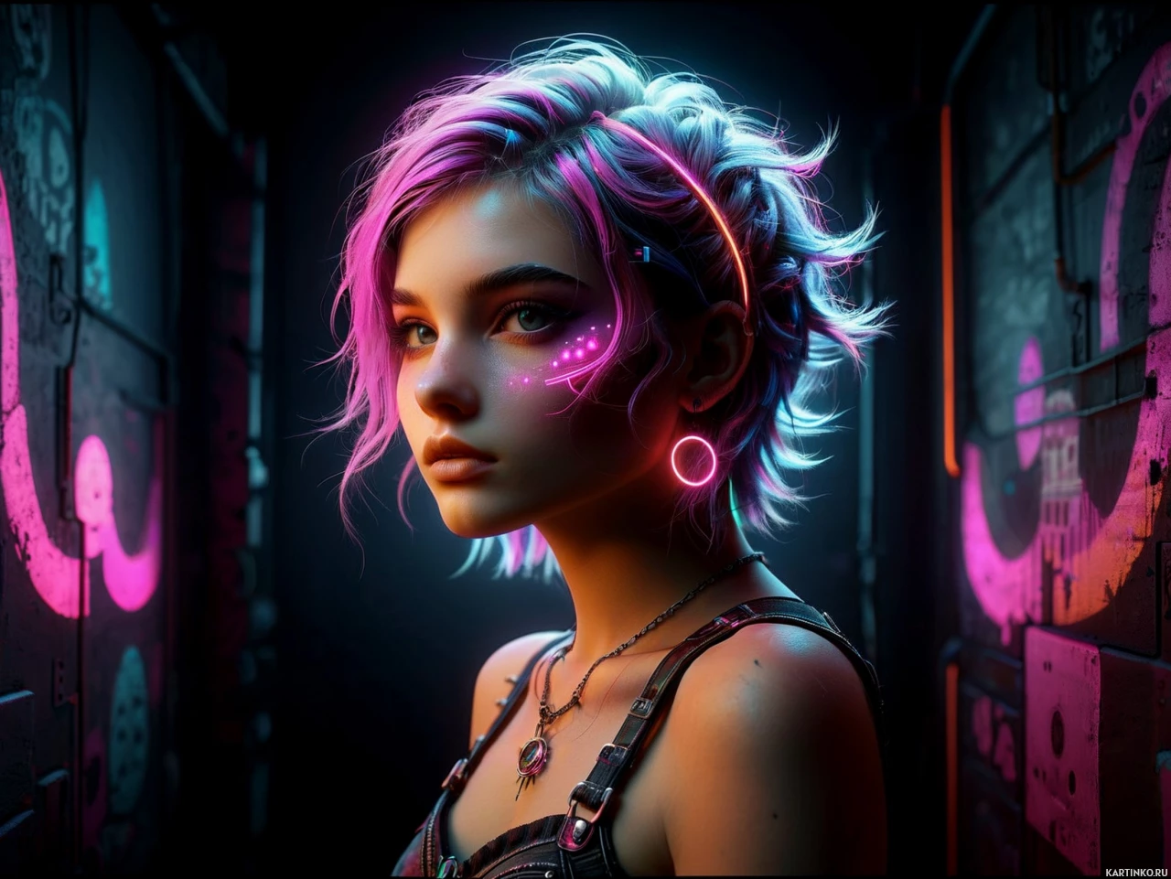 Дизайн в киберпанк стиле с девушкой с розовыми волосами Картинки с такими же тегами