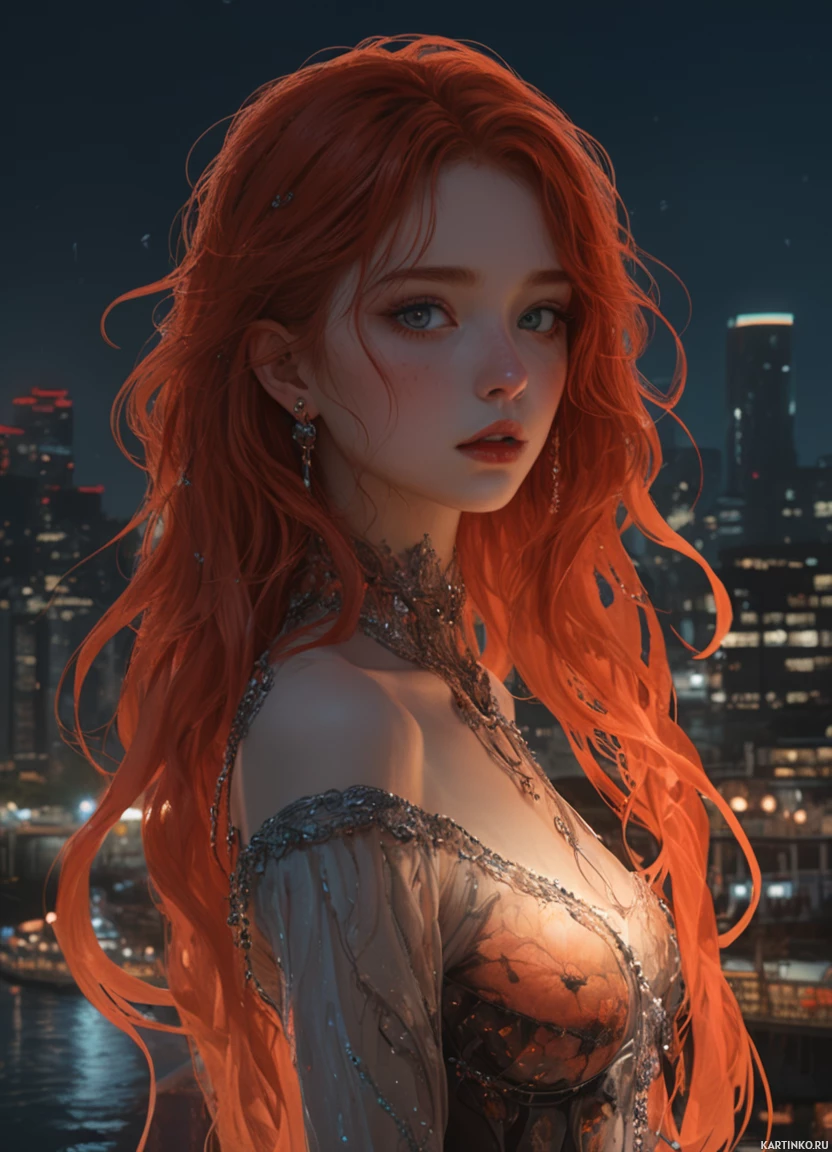 девушки | Красивые авы с девушкой | Girls | Нежная рыжеволосая красавица на фоне городских огней