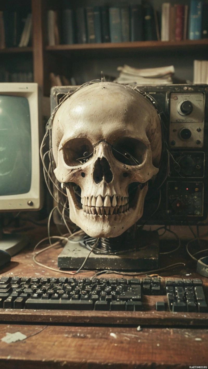 Череп с проводами как настольный аксессуар Больше картинок по схожим темам