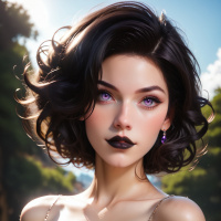 blue eyes. She has an ethereal appearance, with pale skin and is wearing what appears to be a purple or blue corset-like garment that suggests she might be from a fantasy setting or