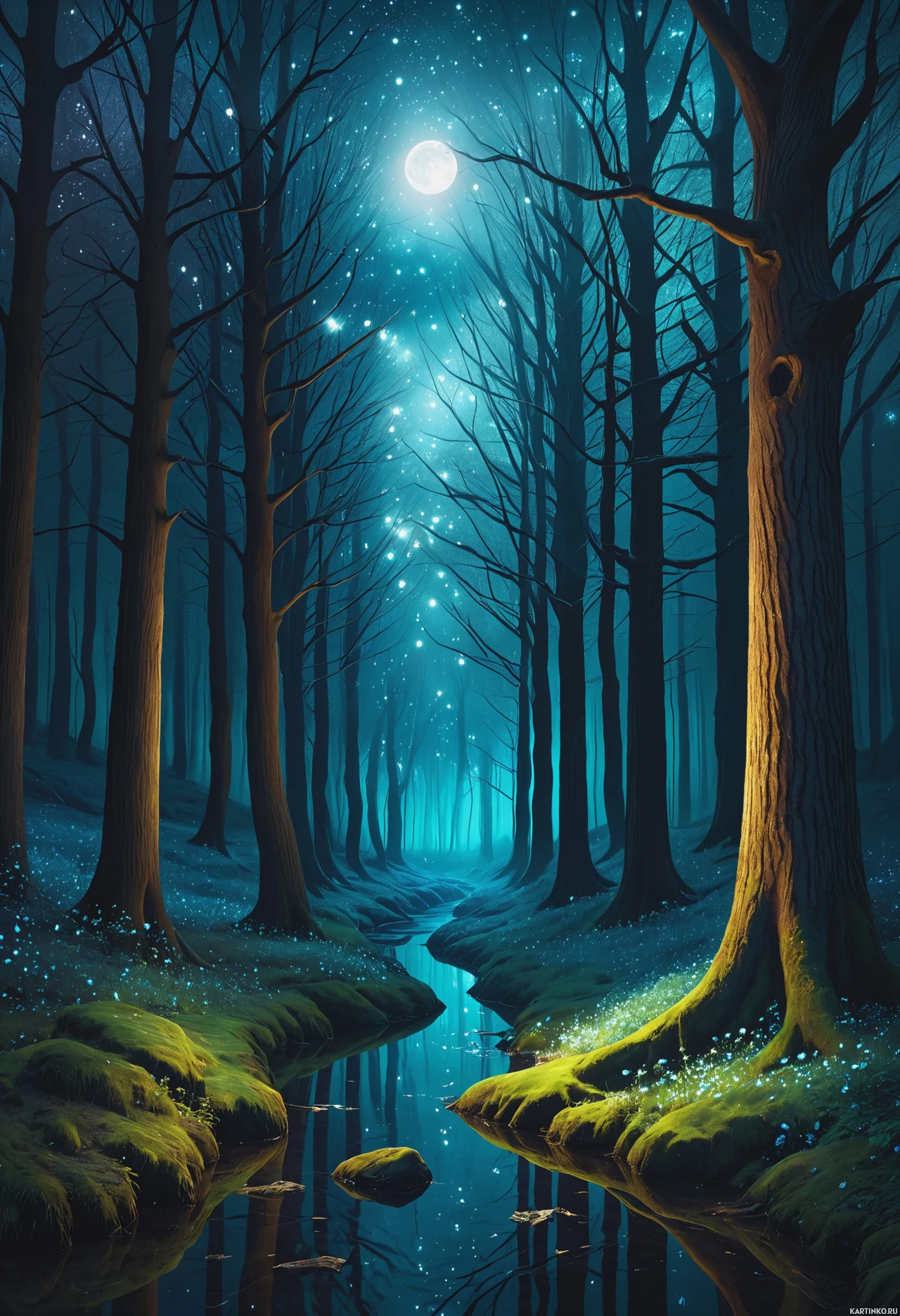 лес | Фотки и рисунки с лесом | Forest | Ночная тропа в мистическом лесу