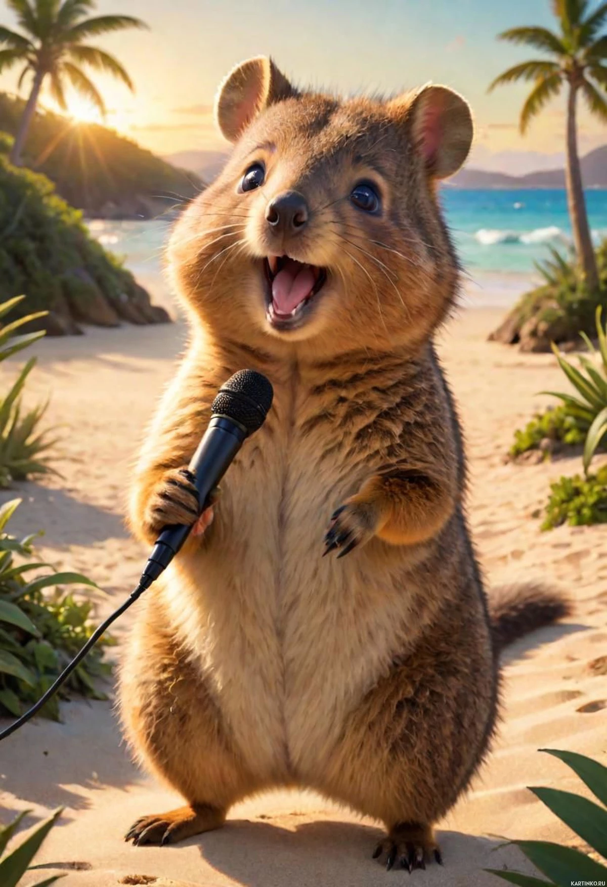 животные | Фотки и рисунки с животным | Animals | Забавный суслик с микрофоном развлекает отдыхающих на пляже