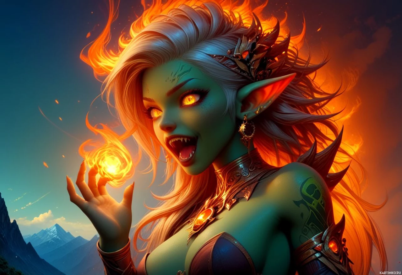 Фантастическая героиня с горящими глазами и рогами Больше картинок по схожим темам