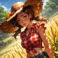 Милая девочка в стиле чиби, запечатлённая в поле как фермер Картинки с такими же тегами
