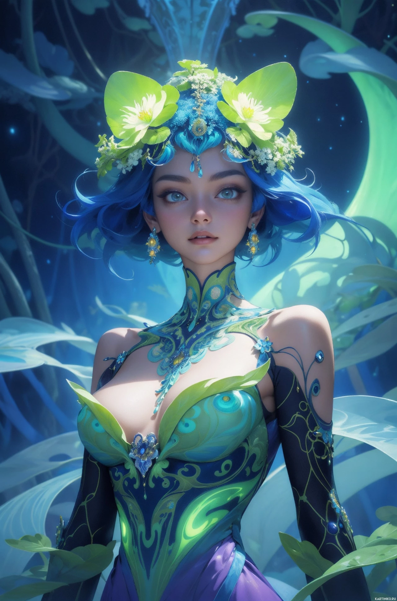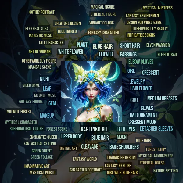 синие волосы | Blue hair | Мистический персонаж из мира фэнтези