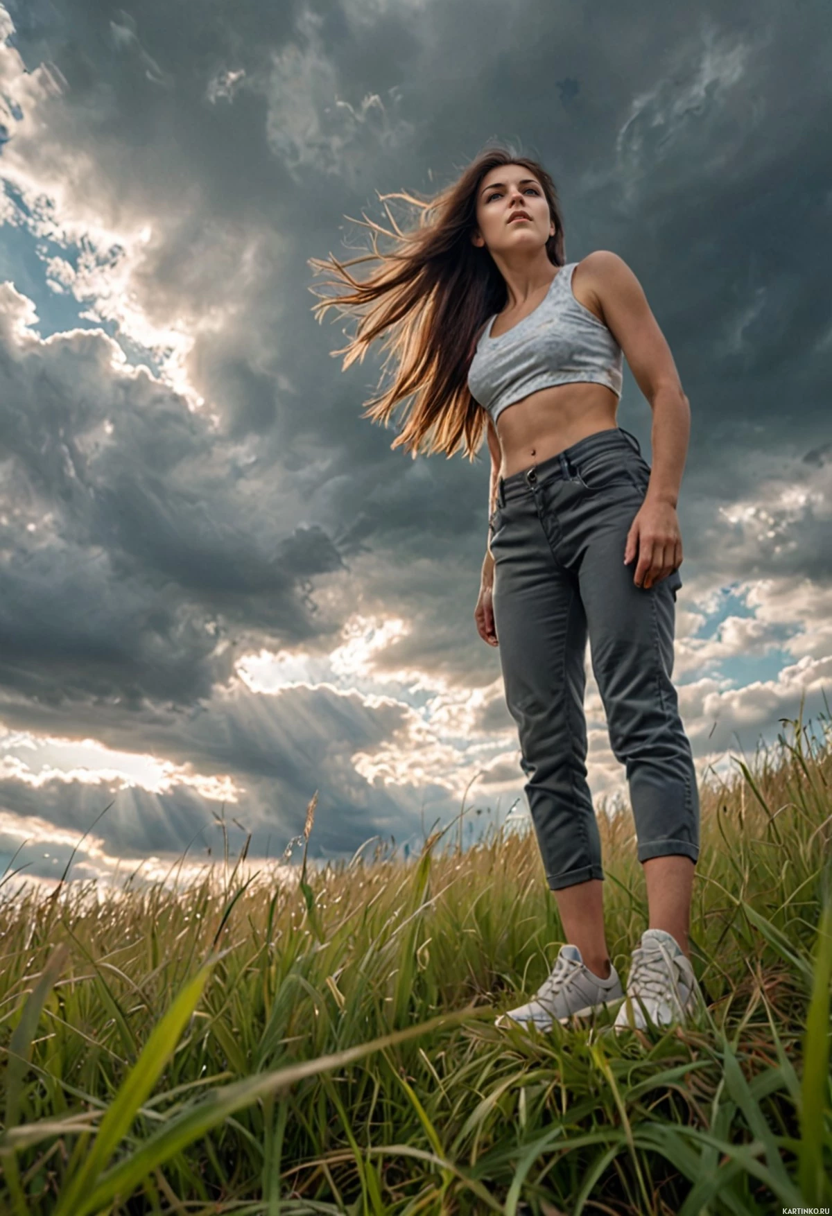 Девушка, излучающая силу вопреки надвигающейся буре Больше картинок по схожим темам