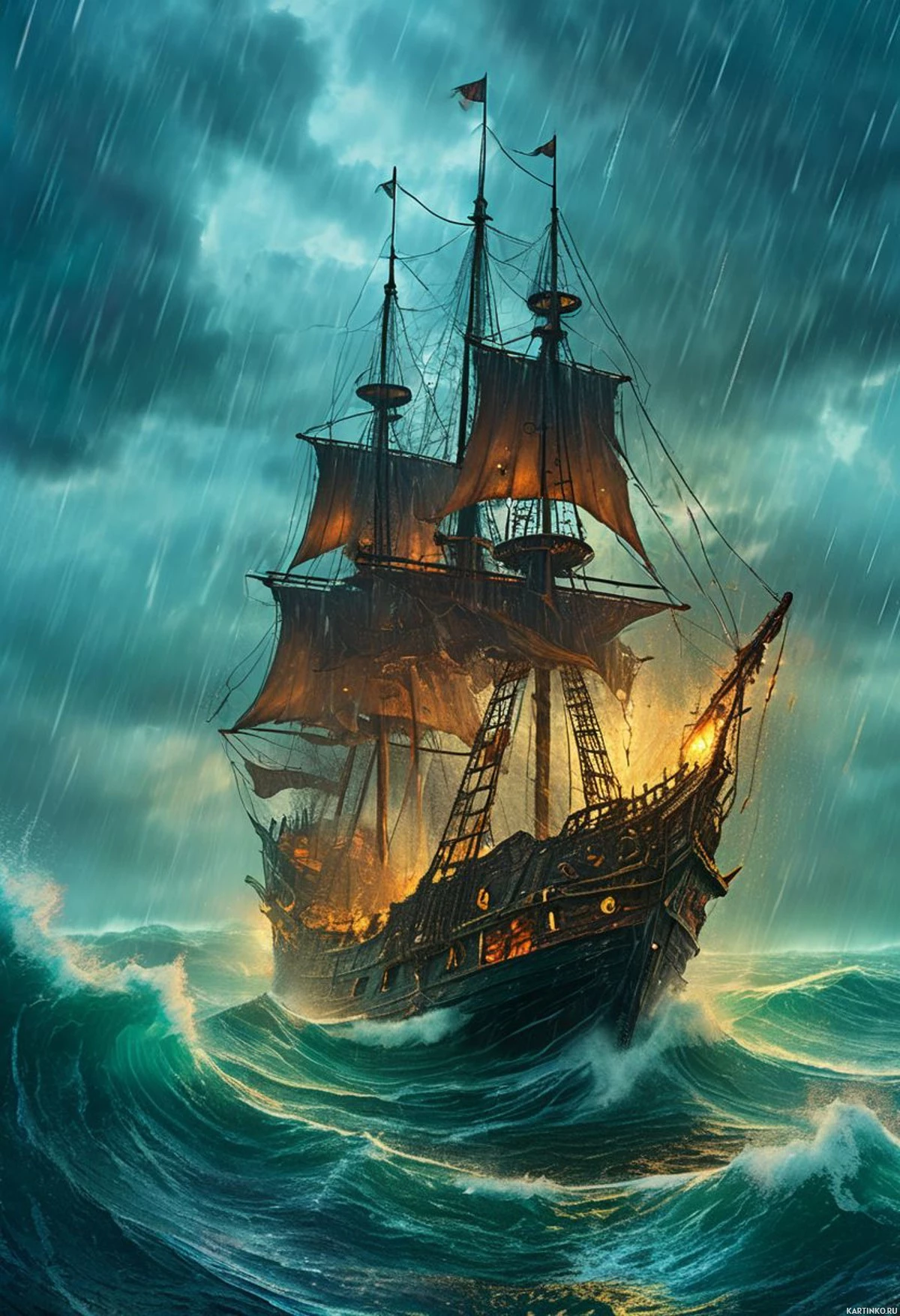 корабли | Скачать аватары с кораблём | Ships | Древняя морская экспедиция под проливным дождем и на бушующем море