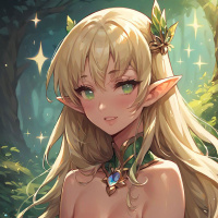 golden tones that could imply an enchanted or mystical setting. There are subtle light effects and particles around her head and shoulders, contributing to