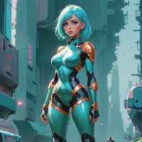 Девушка с бирюзовыми волосами в стиле научной фантастики Больше картинок по схожим темам