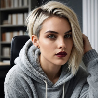 Стильная короткая стрижка с блондинистыми волосами, излучающая уверенность Картинки с такими же тегами