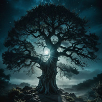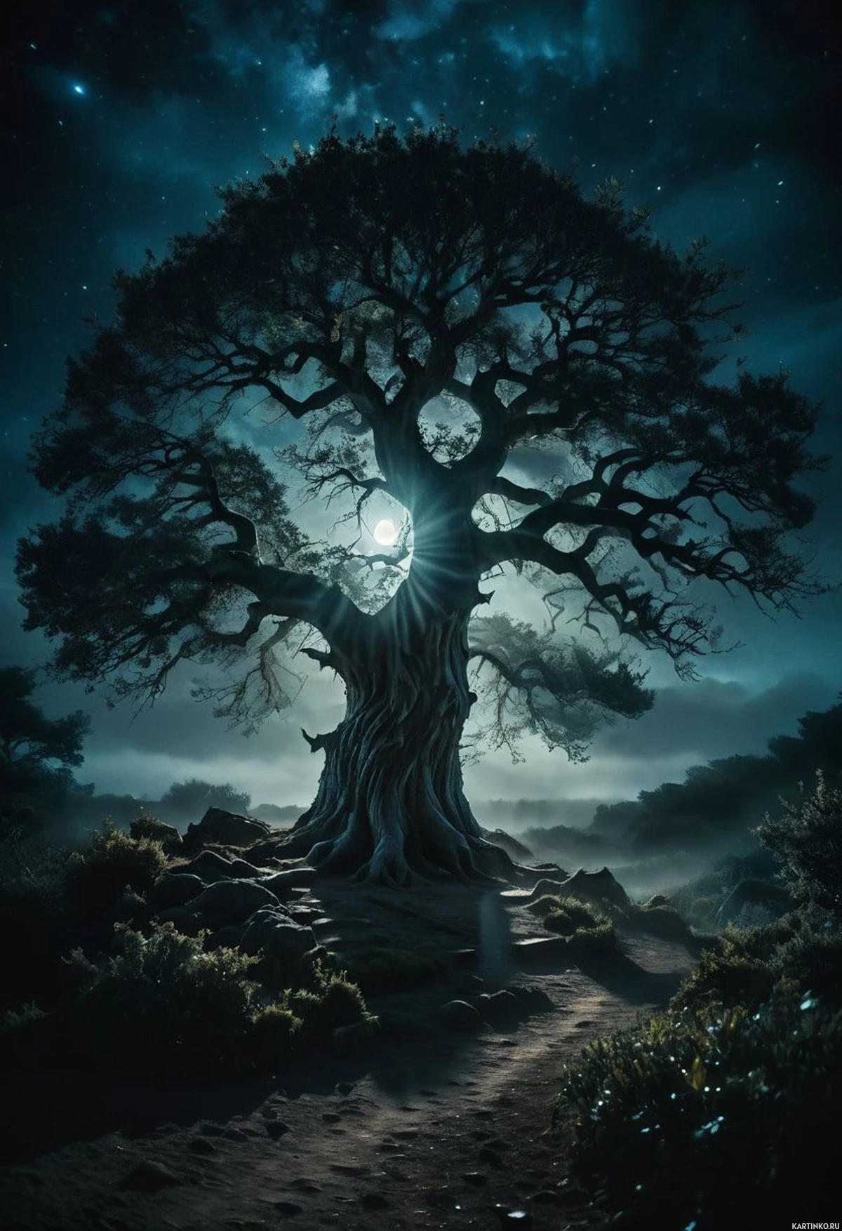 Сияющее дерево в ночном пейзаже Картинки с такими же тегами
