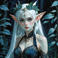 На картинке изображен персонаж с эльфийскими чертами. У нее белые волосы и заостренные уши, что характерно для эльфов из фэнтези. Персонаж одет в сложный доспех, включающий шлем с роговидными выростами и украшенный драгоценными камнями. Одежда, похоже, сделана из металла с голубоватым оттенком, что может указывать либо на мрачный фэнтезийный сеттинг, либо на магические свойства. Фоном служит пейзаж с деревьями с тонкими стволами и пышной листвой, создающий мистическую атмосферу, часто встречающуюся в фэнтезийных мирах. Общий стиль картинки говорит о том, что она может быть из видеоигры или анимационного сериала, выполненного в реалистичной, но стилизованной манере, что характерно для современной фэнтезийной индустрии.