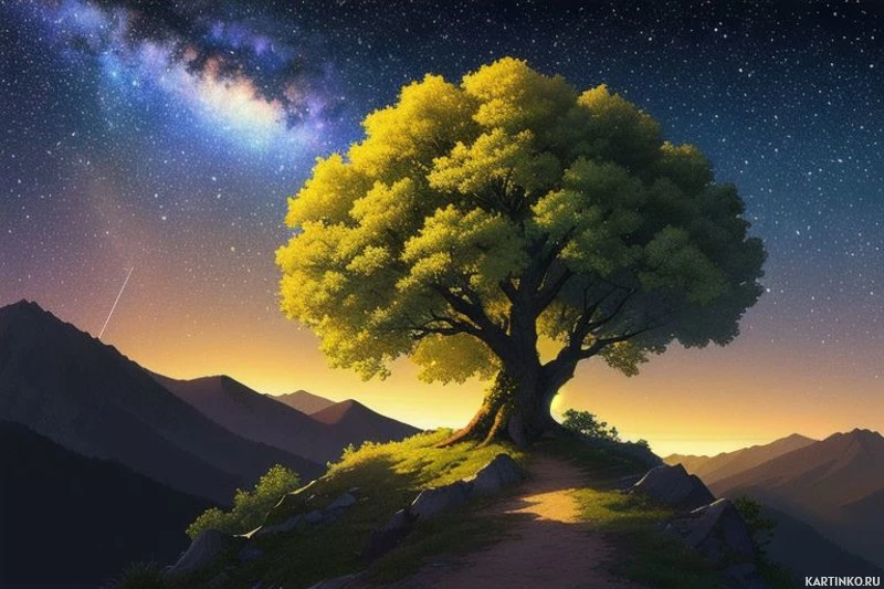 Величественные деревья под звёздным небом Больше картинок по схожим темам