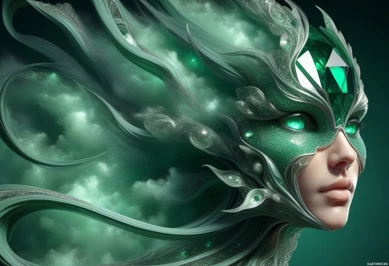 На картинке изображён персонаж, похожий на существо из мира фэнтези, с человеческой фигурой, облачённый в сложную броню и головной убор. У него длинные развевающиеся волосы и суровое выражение лица. На нём что-то вроде шлема или маски, украшенной замысловатыми узорами, напоминающими мифического морского чудовища. Фон тёмный и бурный, что усиливает драматизм картинки. Видны светящиеся элементы, намекающие на магические свойства части доспехов. Черты лица персонажа симметричны, что добавляет элегантности и силы общему дизайну.