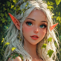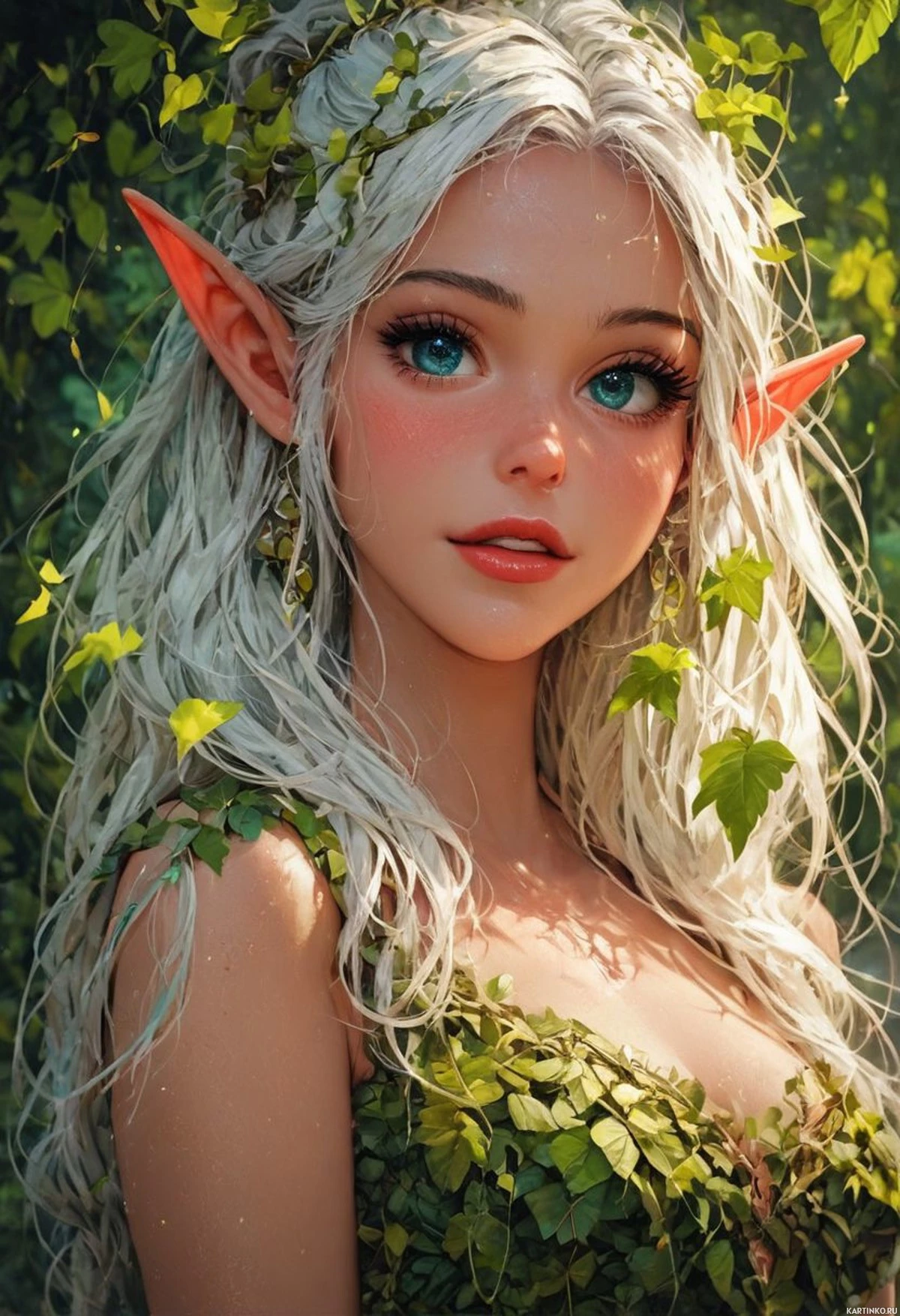 Фэнтезийный персонаж с белыми волосами, украшенный зеленью Картинки с такими же тегами